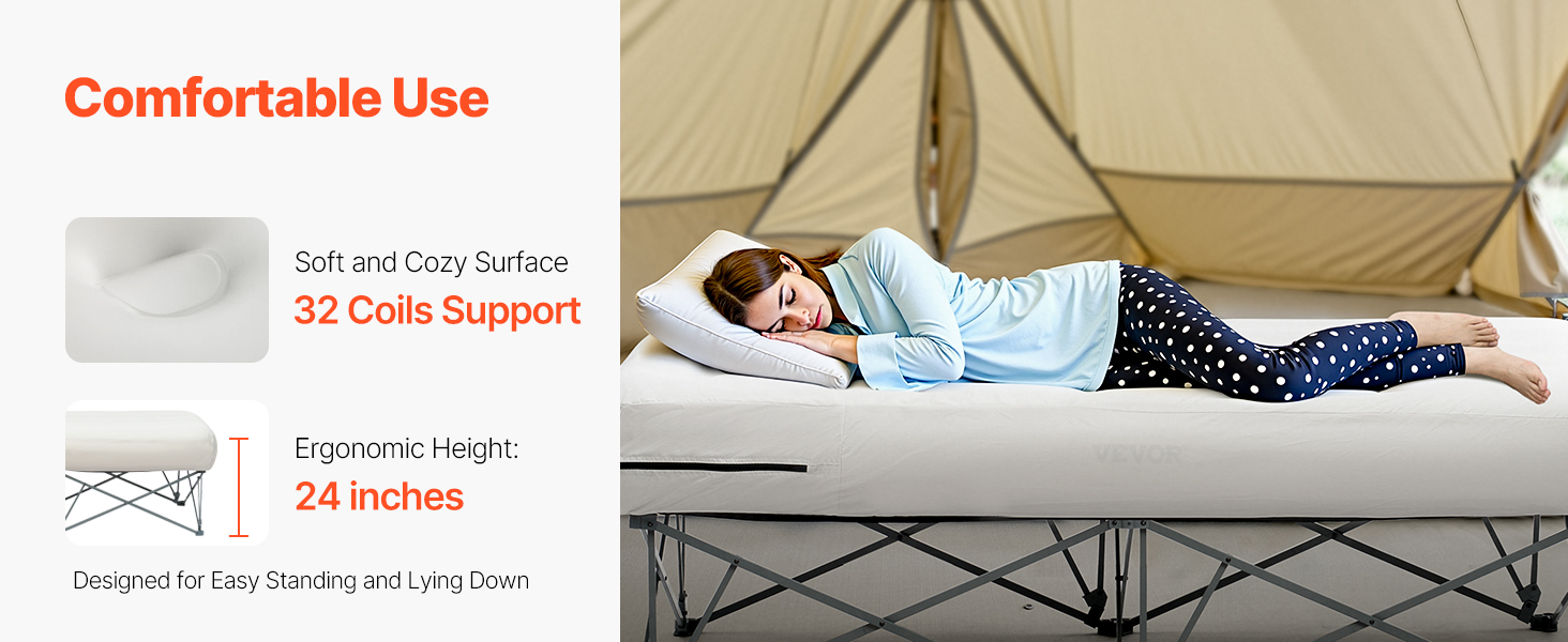 - Comfortable Use: Featuring 32 circular coils for soft, supportive comfort. The suspended bed frame design of the inflatable air bed is ergonomically heighted for easy getting in and out, making it senior-friendly.