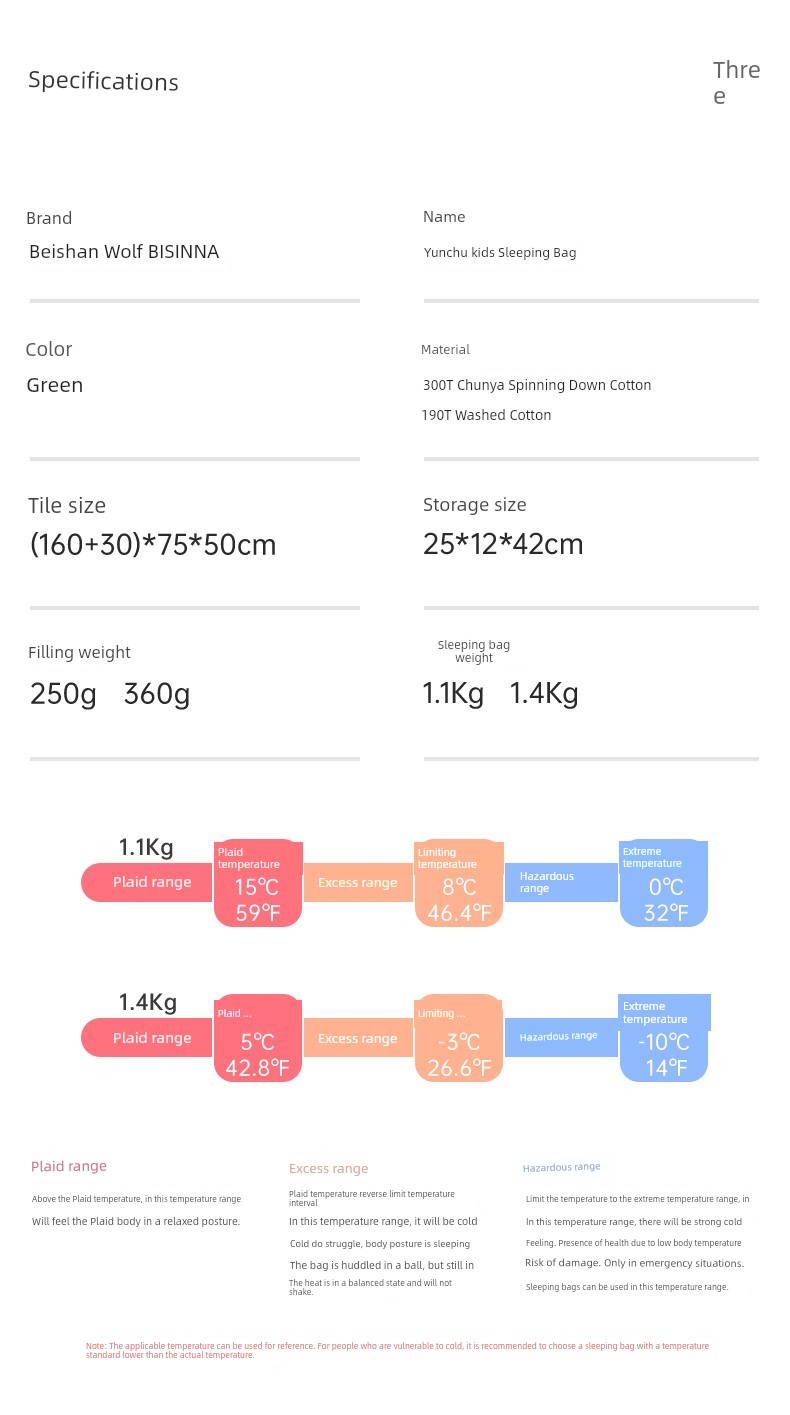 Beishan Wolf Children Sleeping Bag Outdoor Camping Travel Student Nap Heattech Thickened Cold Protection Spring & Fall Portable Camping