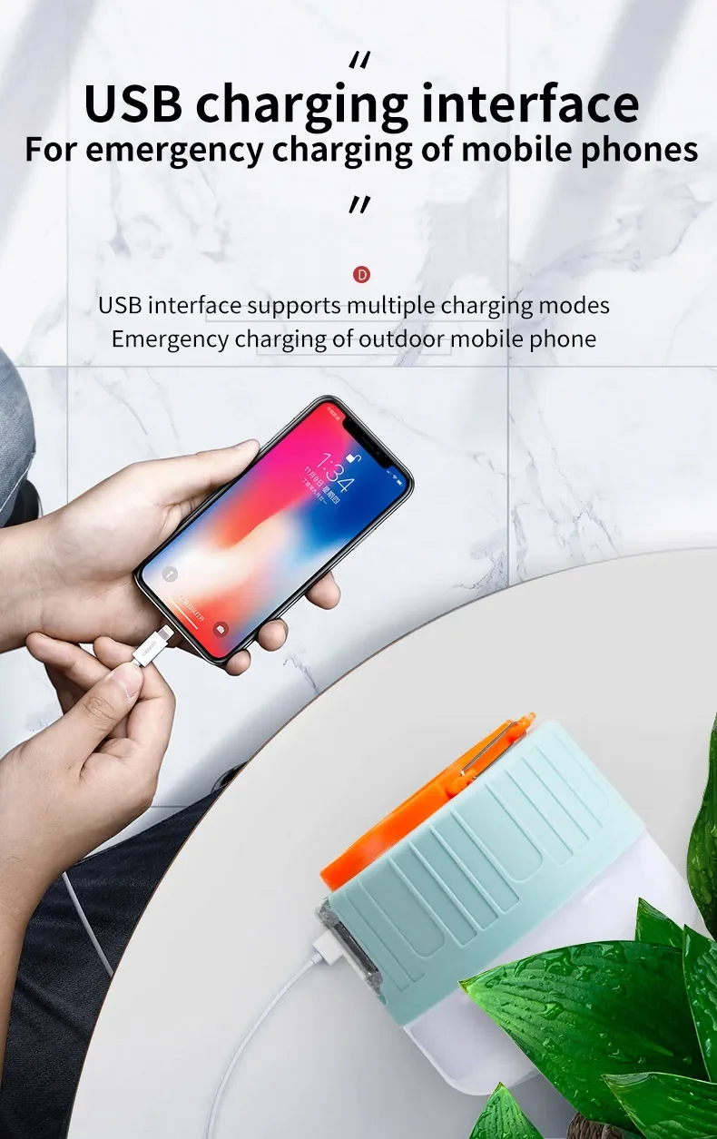 • Rechargeable battery: No need to worry about changing batteries, just use the USB cable to charge the lantern.